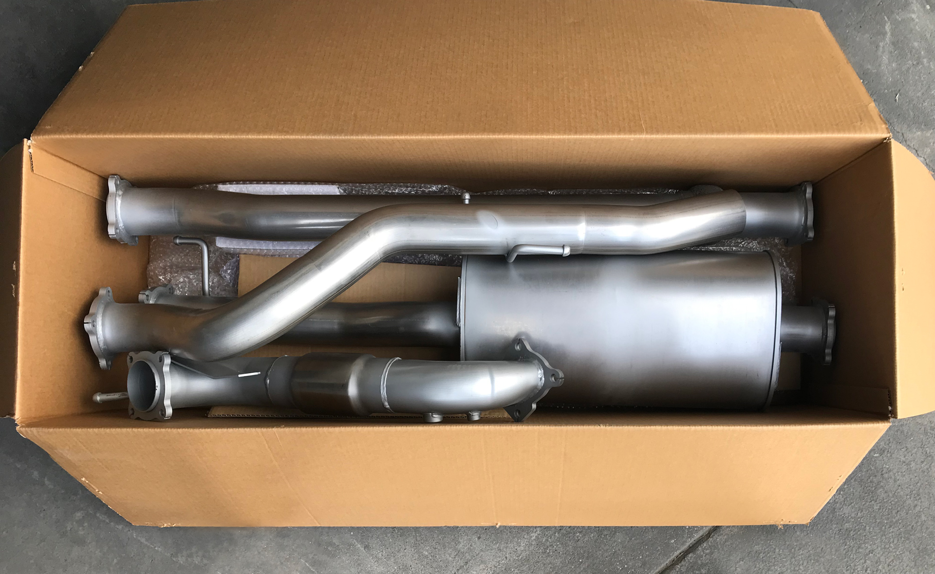 O.E. style heavy duty hangers and brackets connect to all original mounting points on vehicle.